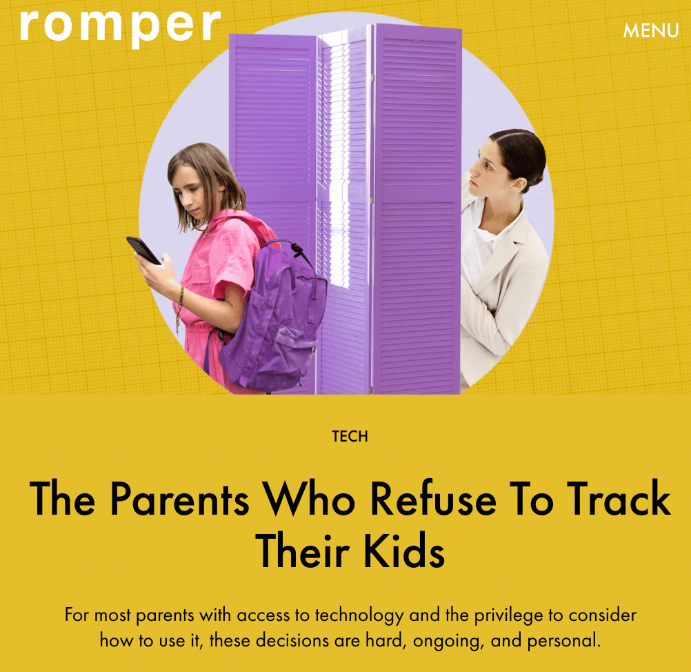 Knowing your kid is out there riding their bike, out with kids you don't know, driving or riding rollercoasters can tempt parents to track them with locator apps or other methods. I wrote in Growing Up in Public about why I don't think we should be checking our kids locations (or grades) all the time, even though our phones allow it. Romper included me in this thoughtful article about parents who are resisting the pressures to track their kids.